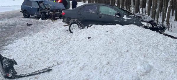 По данным местной Госавтоинспекции, 22-летний водитель Toyota Corolla не справился с управлением на заснеженной трассе и столкнулся с «Нивой».