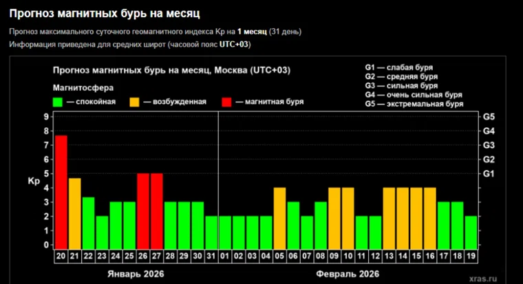 Прогноз магнитных бурь на январь 2026