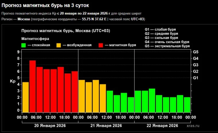 Прогноз магнитных бурь на 21 января 2026