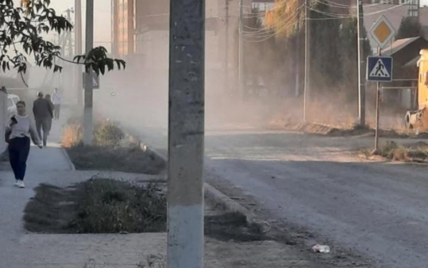 Дорога в школу невыносима. Всегда, когда отводим детей школу, дышим этой пылью. Каждый день так. Когда же сделают дорогу? Ни остановки, ни дороги нормальной нет.
