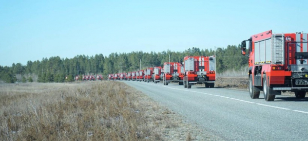 В текущем году за счёт лизингового финансирования предусмотрена поставка пожарной техники отечественного производства: 333 пожарных автомашин, 380 МЛПК, 339 трактора.